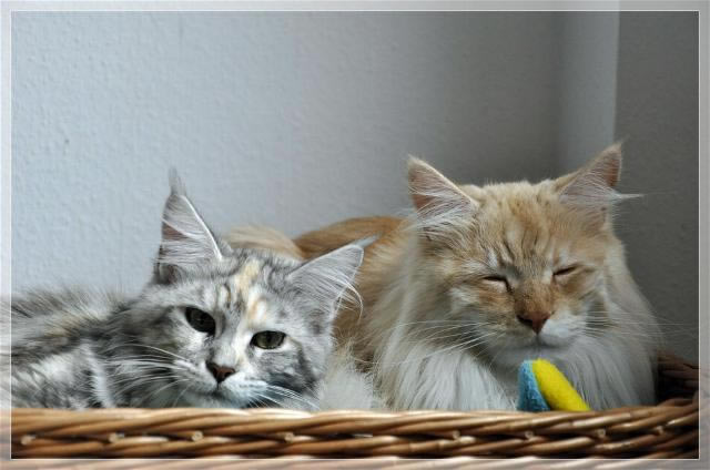 Maja und ihre Freudin Hanni haben uns 2 Wochen lang besucht. Für Maja war es, als wäre sie überhaupt nicht weg gewesen und selbst Hanni, die nicht aus unserer Cattery stammt, hat sich super schnell eingelebt und fegt mit den Babys durch die ganze Bude. Hier ein paar Bilder von den beiden….