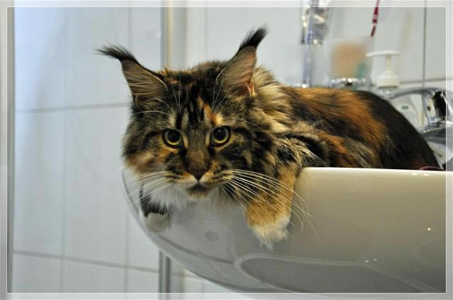 Archie war sofort zu Hause”, bei Elliot hat es 2 Tage gedauert bis er “angekommen” war. Die beiden sind wirklich 2 riesige Prachtburschen, obwohl Archie bei der Geburt nur 74 g gewogen hat. Da kann man mal wieder sehen, dass das Gewicht der Kitten nichts aussagt über die spätere Entwicklung. Oder, seht selbst!